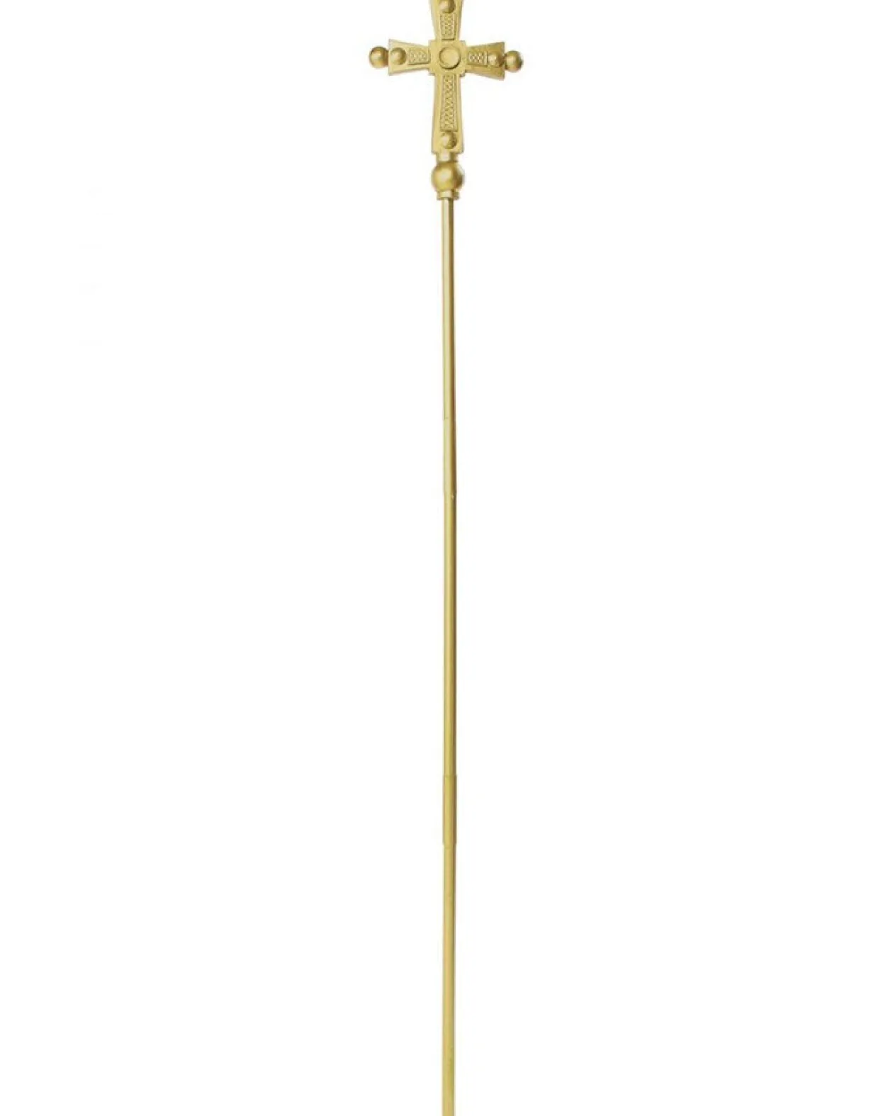 This Divine Cross Staff Will Add The Perfect Finishing Touch To Your Pope Or Priest Costume. This Gold Staff Assembles From Three Pieces To Make A 66″/1.7M Long Piece.