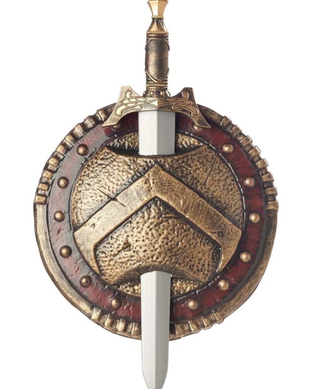 This Spartan Combat Shield And Sword Is Fit For Battle In The Collosseum. Easy Handle For Carrying Inside The Shield. The Perfect Accessory For Your Knight Or Gladiator Costume.
