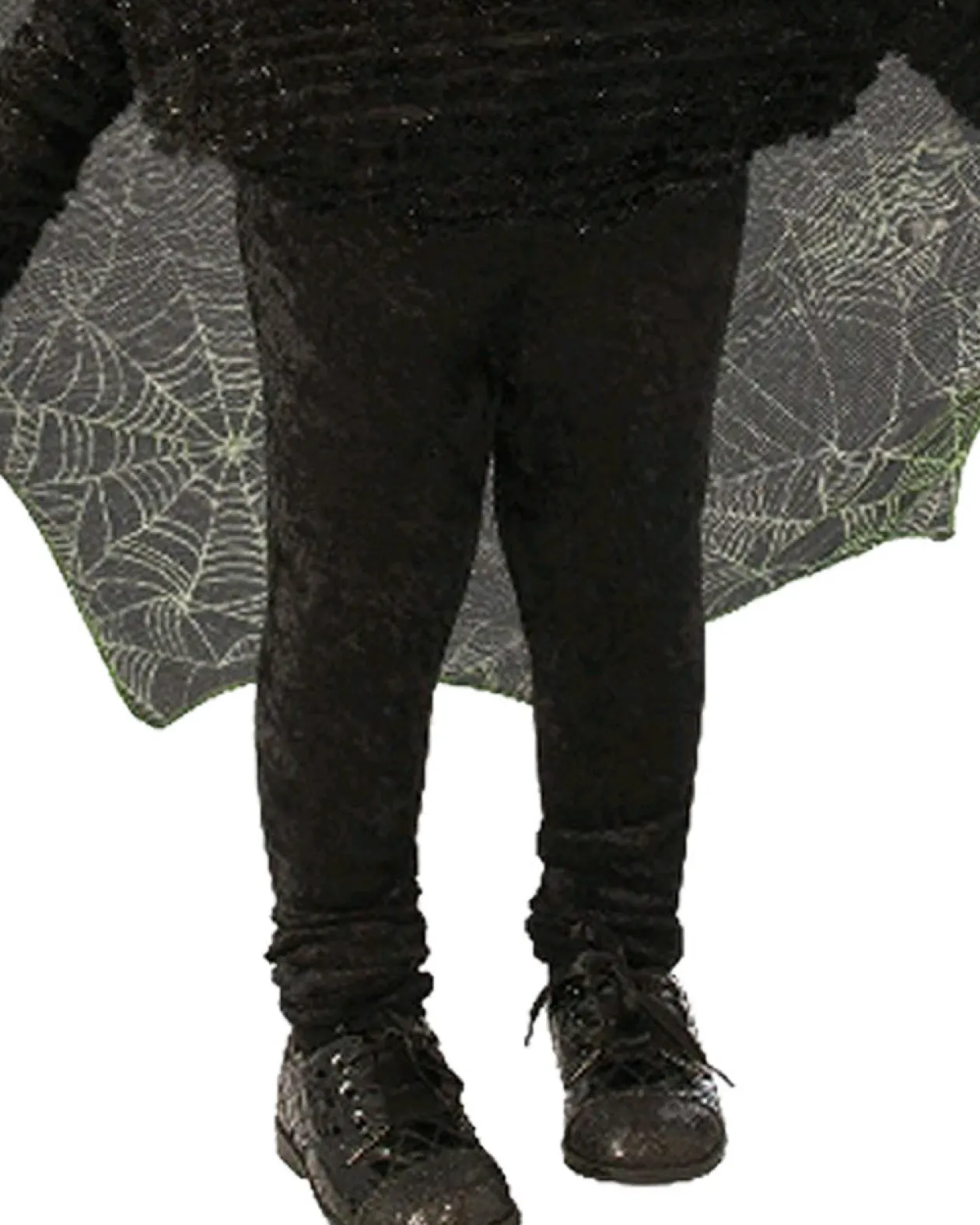 Remember The Classic Nursery Rhyme You Used To Sing, About The Spider? The Eensy Weensy Spider Climbed Up The Water Spout. Have Your Little Girl Sing This Nursery Rhyme While Dancing In This Eensy Weensy Spider Girls Costume Next Halloween Or Dress Up The Party. This Adorable Costume Includes A Black Woven Long Sleeve Top With A Touch Of Glitter Fibres. Attached Along The Sides Of The Top Are Four Extra Legs, Which Are Filled With Fibre To Give Them A 3D Effect And On The Front Of The Top Is A Green Bowtie With Purple Piping Underneath. A Separate Pair Of Black Velvet Leggings, To Complete The Eight Legs A Spider Has. Attached To The Back Of Each Of The Legs And Sleeves Is A Long Grey Cape Shaped Like A Web And Features White Spiderweb Printed All Over The Cape. The Headpiece Is Made Out Of The Same Black Material As The Top And Features Two Big Green Round Eyes On The Top And Behind The Eyes A Pair Of Black Antennas. Don’T Let That Rain Wash You Out!