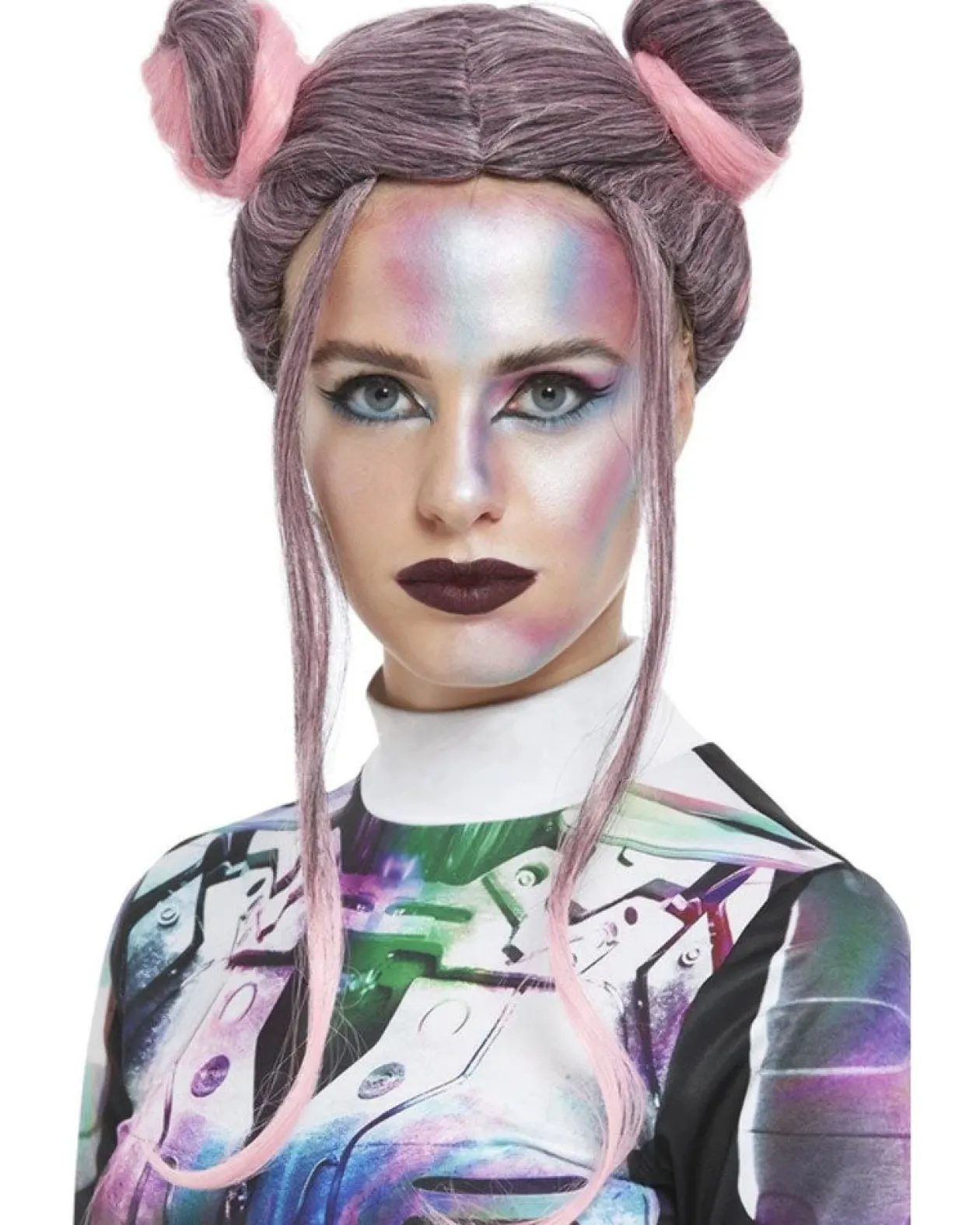 Have The Most Stylish Hairstyle In The Galaxy As You Wear This Space Buns Wig. This Super Cute Wig Comes Pink And White Synthetic Strands And Is Styled With Two Buns Tied On Either Side With Baby Pink Hair Wrapped Around The Buns. The Wig Also Features A Centre Parting And Two Pieces Of Hair Fall To Help Frame Your Face. A Great Accessory For Your Alien Or Space Costume, Just Pair With Our Range Of Space And Alien Accessories To Bring The Character To Life. Wear A Wig Cap For Added Comfort And To Keep Your Own Hair Under Wraps.