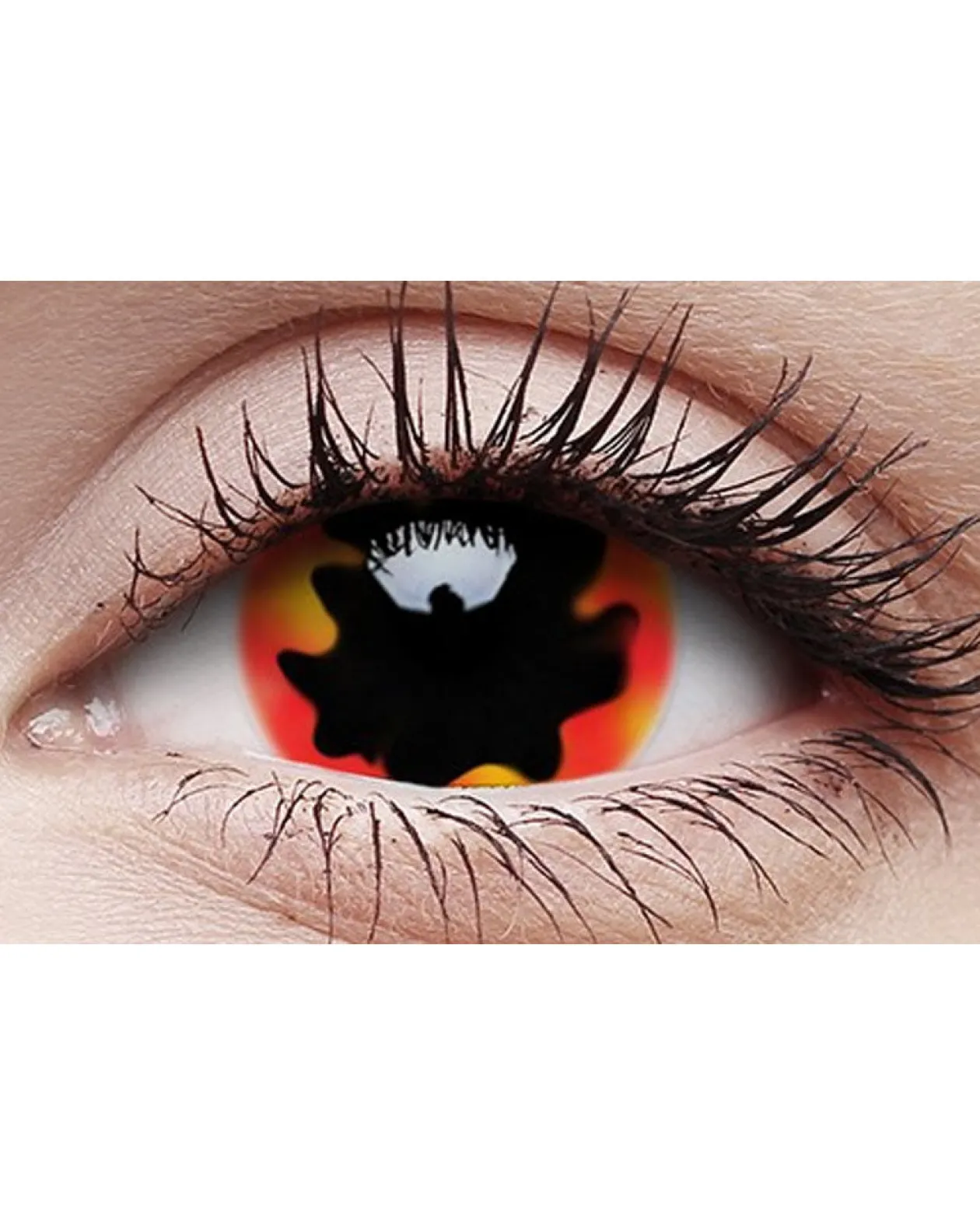 These Blackhole Sun 17Mm Black And Red Contact Lenses Are Perfect For Completing Your Next Costume! Whether You’Re Doing A Funky Makeup Look Or Adding That Final Touch To Your Halloween Costume, These Contacts Are The Ultimate Accessory. The Contacts Feature A Black Pupil With Squiggled Edges And A Red And Orange Iris. The Contact Lenses Are Good For 1 Year Once You Open Them If Stored And Cleaned As Per The Manufacturer’s Instructions. Contact Lenses Must Be Stored In A Lens Solution To Prevent Them From Drying Out When Not In Use. Lens Solution Not Included.