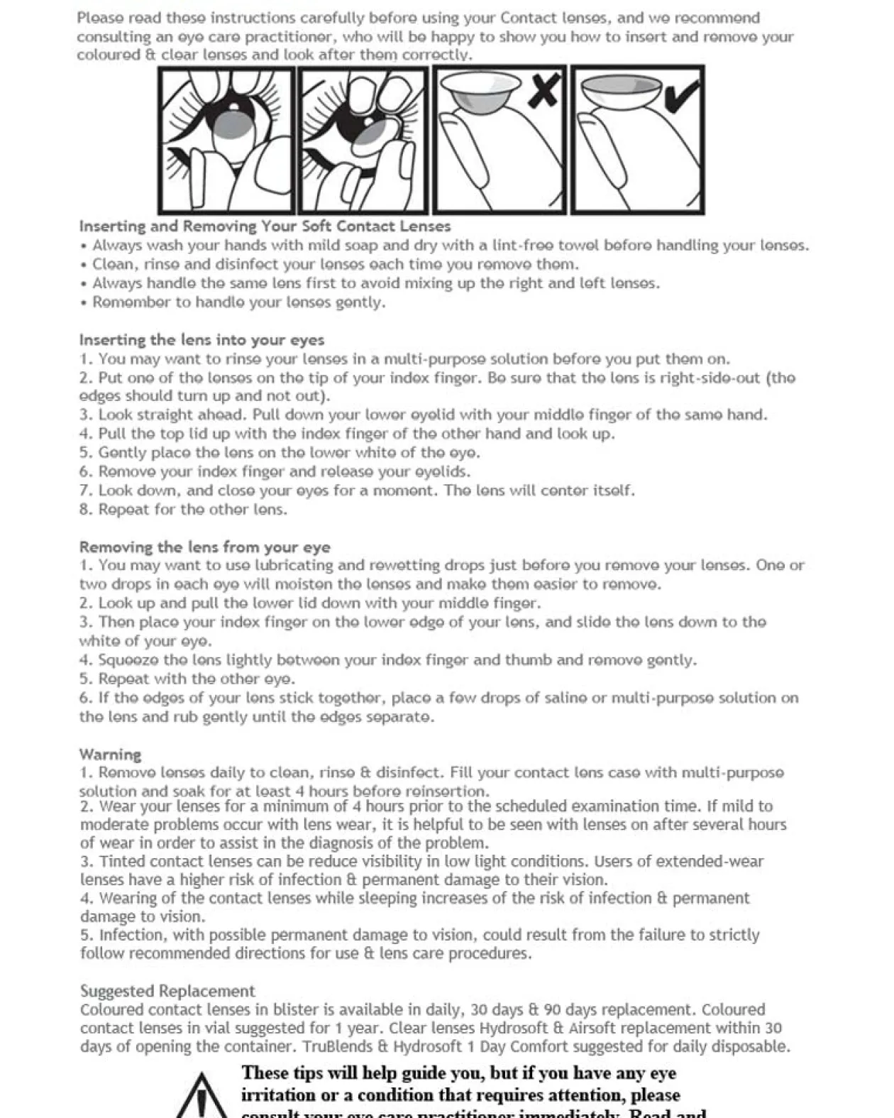 Please Note: One Use Contact Lenses Only. Colour May Not Show Up As Well On Darker Eye Colours. For Hygienic Reasons, This Item Is Not Able To Be Returned Once The Packaging Has Been Opened. See Our Returns Policy For More Information. Case Not Included.