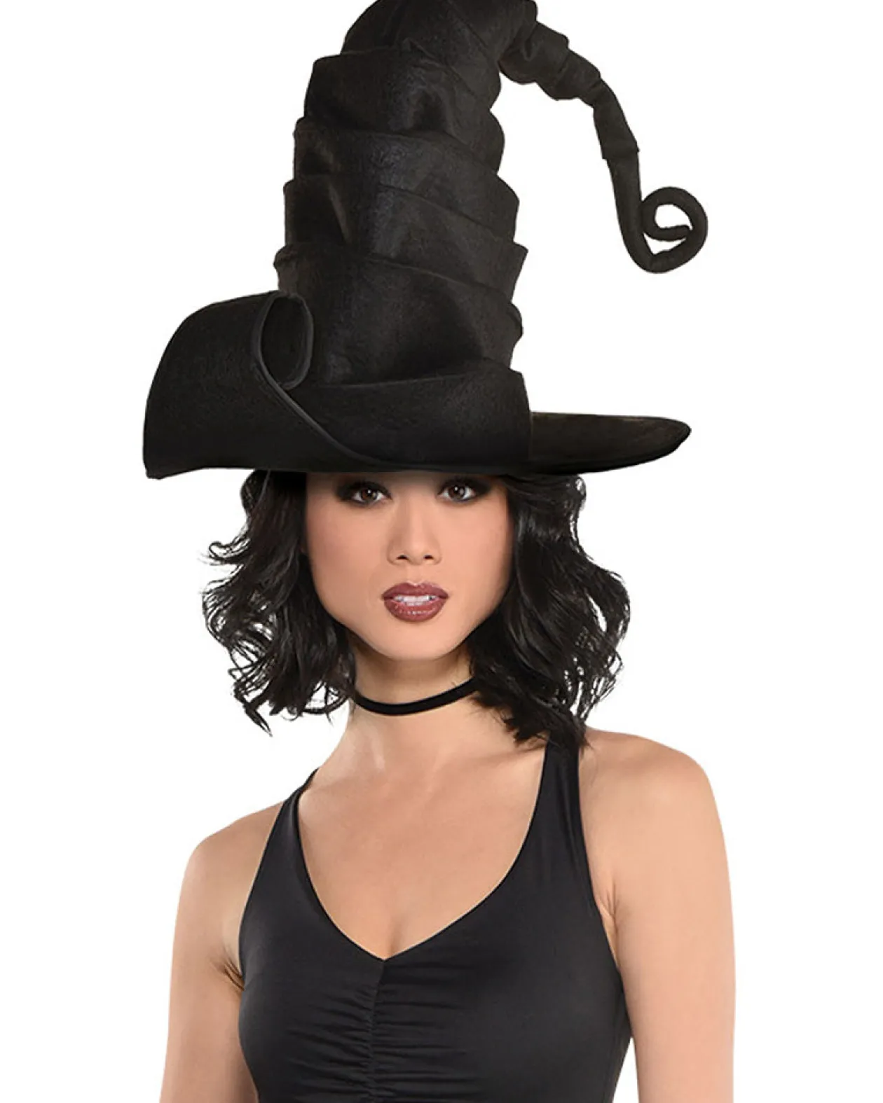 Complete Your Witch Outfit With A Unique Design Like This Deluxe Crinkle Witch Hat. This Tall Witch Hat Comes In Black With A Crinkle Design And The Side Of The Brim Curls Up. Pair This Hat With Our Other Range Of Witch Accessories.