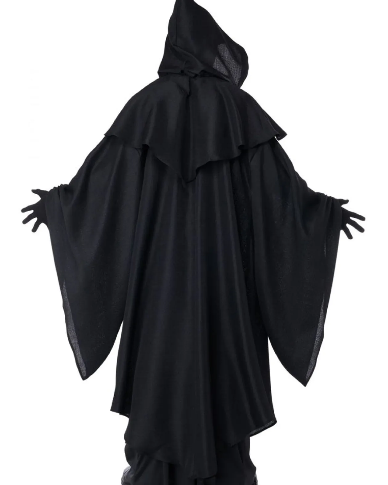 Lead Your Secret Cult This Halloween Night And Dress The Part In This Dark Rituals Robe Deluxe Mens Costume. This Creepy Costume Features A Long Black Robe With An Attached Black And Red Patterned Cape. The Dress Also Features A Large Red Upside-Down Cross On The Chest And Shoulder Pads. There Is A Black Belt, A Black And Red Miter Style Hat With An Occult Symbol Printed On The Front And A Black Veil To Wear Underneath The Hat.