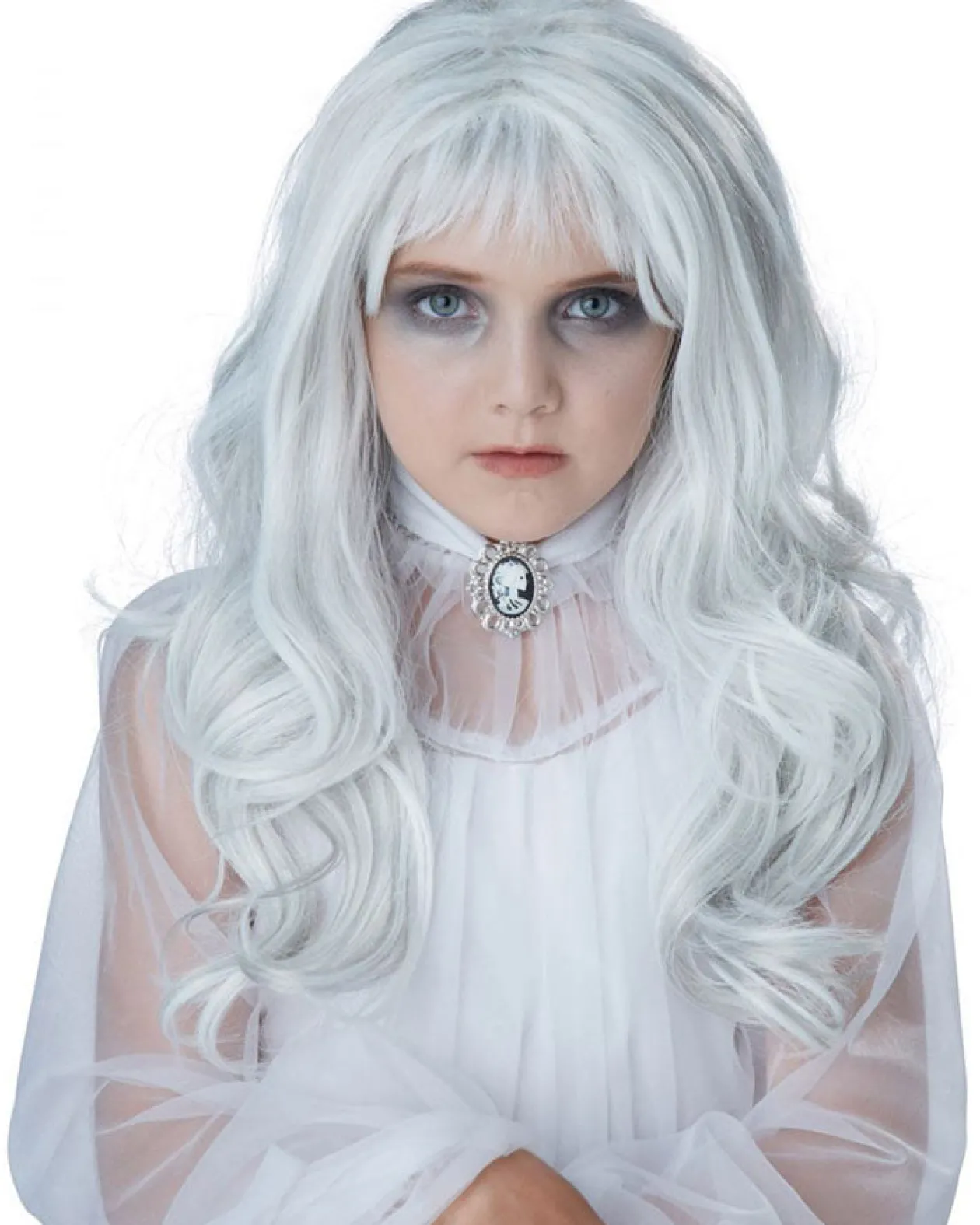 Look Like You Have Come Back From The Dead With This Spooky Ghost Grey Girls Wig. This Wig Is Made Of Synthetic And Features Long Flowing Grey Hair. Wear A Wig Cap Underneath To Keep Your Own Hair Under Wraps And For Extra Comfort.
