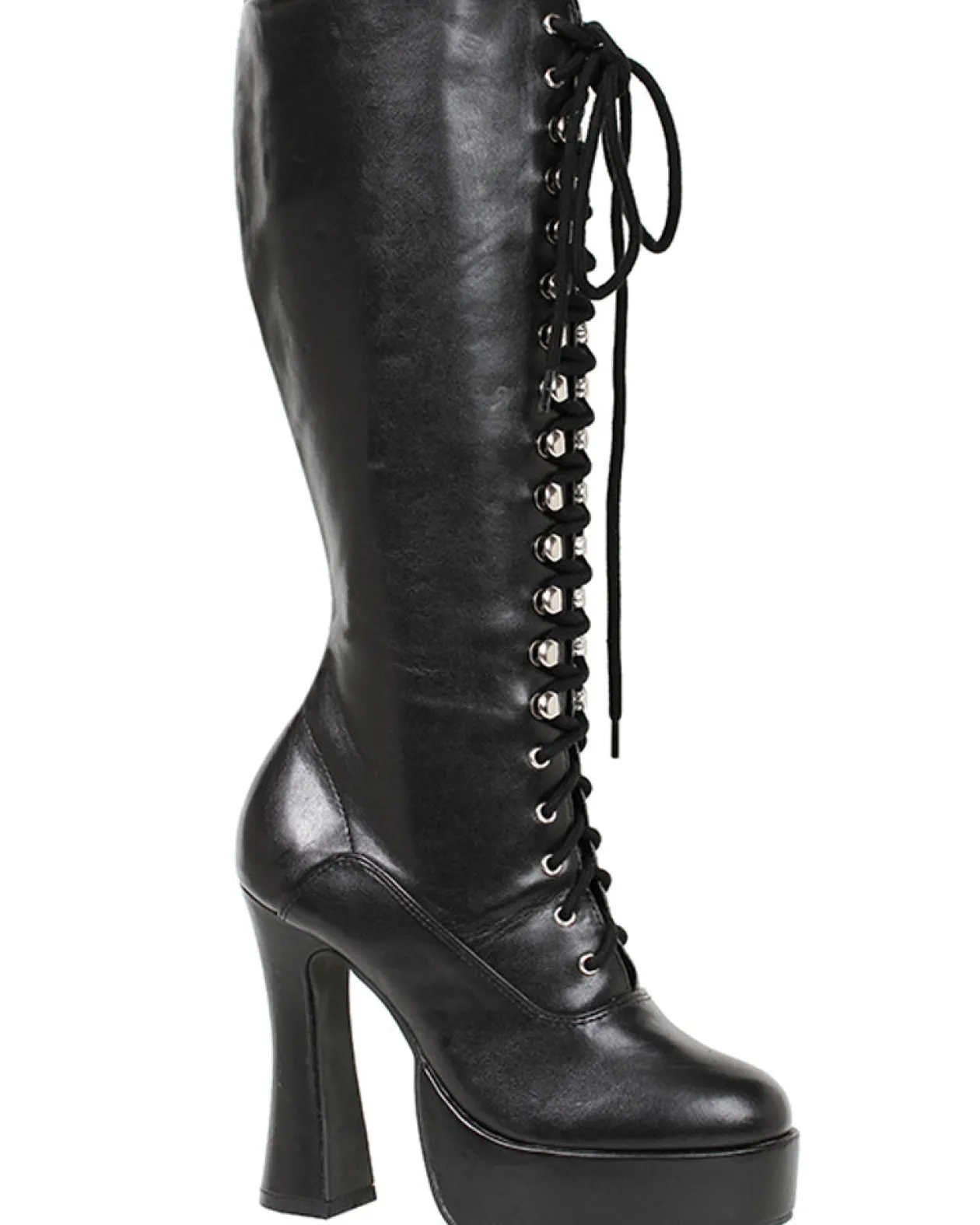 These Matte Black Easy Lace Womens Boots Are The Most Versatile Accessory You Can Have In Your Wardrobe. The Boots Are A Pair Of Lace-Up Black Boots With A Matte Finish, Functional Laces Up The Front Of The Boots, A Zipper Up The Inside Of The Leg And A Chunky 12Cm / 5In Heel. They’Re Perfect For Any Number Of Characters And Occasions Such As Christmas Miss Santa Or Mrs Claus, Superhero Costumes, Villain Costumes, To Use With Any Uniform Outfits Like Police Costumes, And Even For Halloween Outfits For Witches, Vampires And More.
