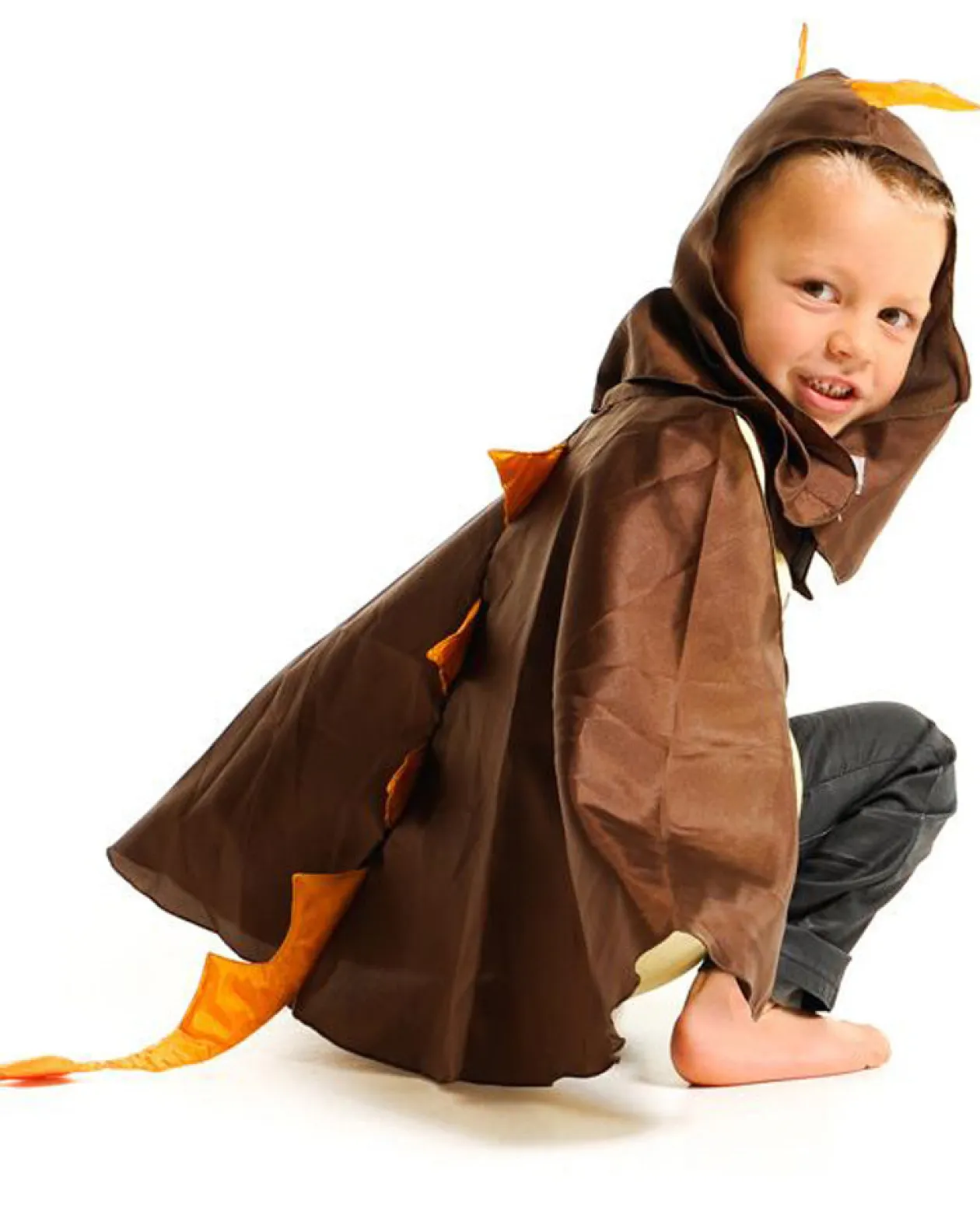Roam The Jurassic Period Wearing Our Stegosaurus Dinosaur Kids Cape. Featuring A Brown Cape Attached With Orange Spines And An Attached Spiny Tail! The Costume Comes Complete With A Matching Brown Hood With Orange Spines. Great For A Fun Fancy Dress-Up Idea!