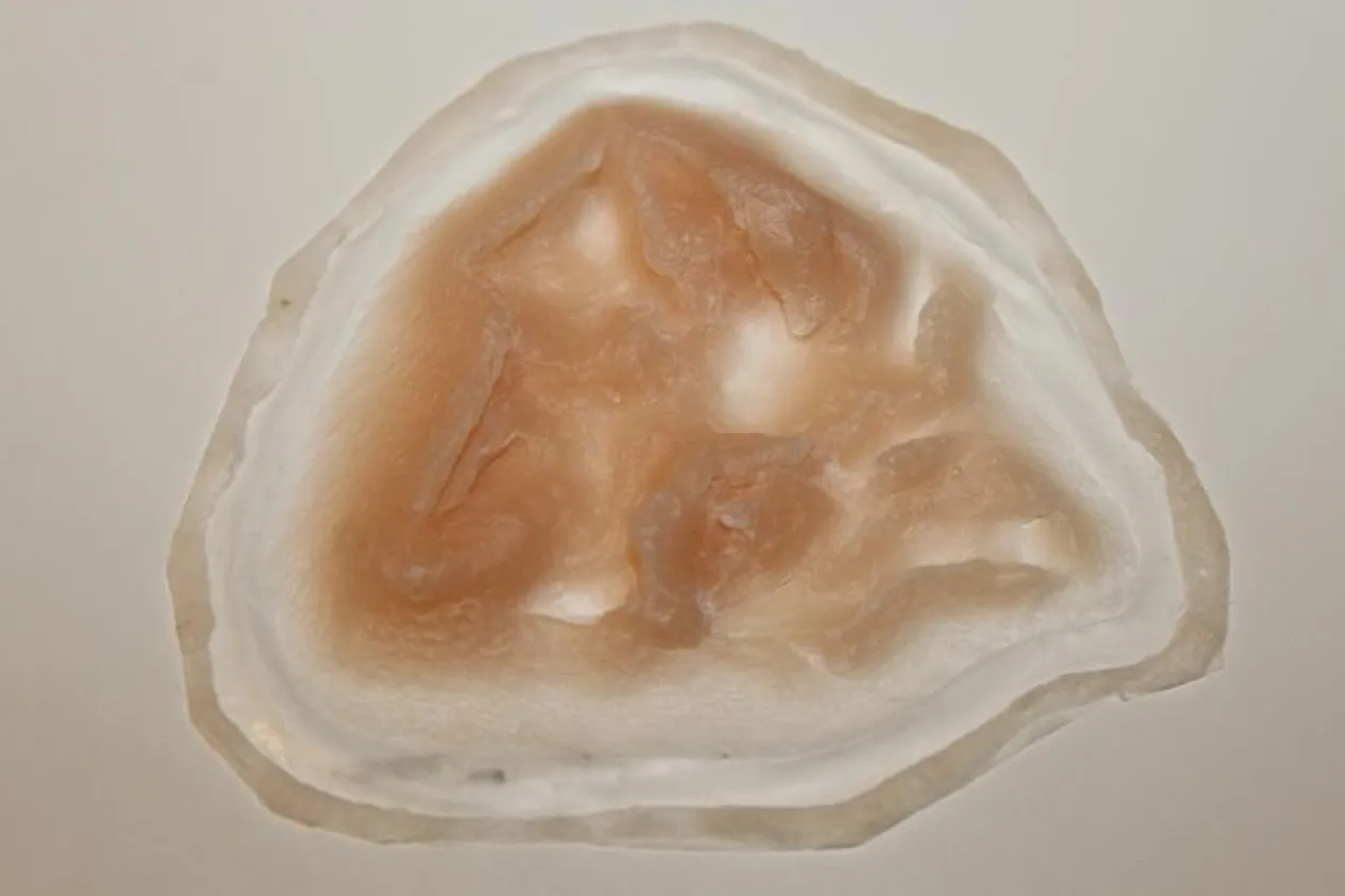 Encapsulated Silicone Prosthetic Wound Made By Forensicfx Studios. This Prosthetic Piece Is Specifically Designed To Be Used In The Special Effects Makeup Industry.