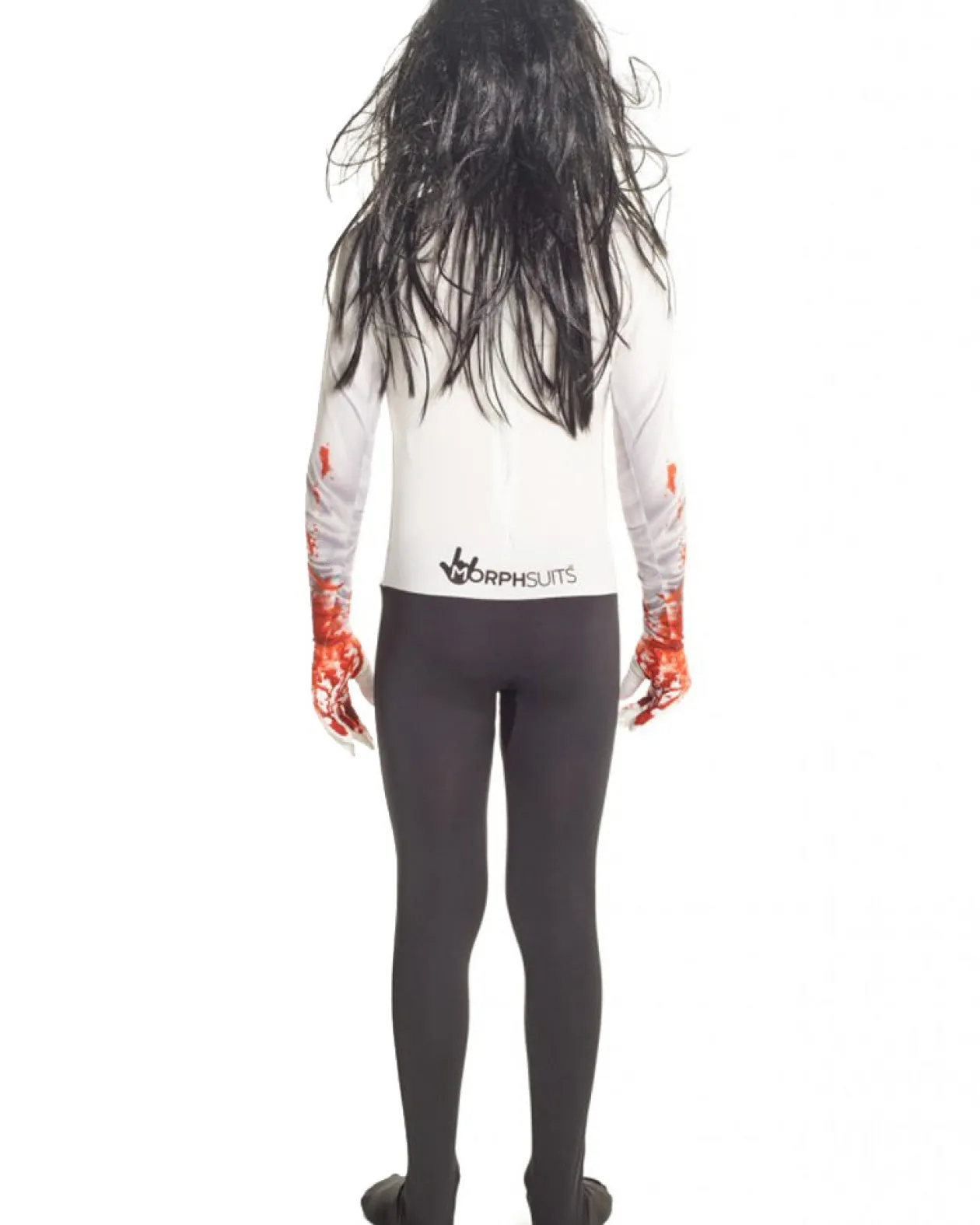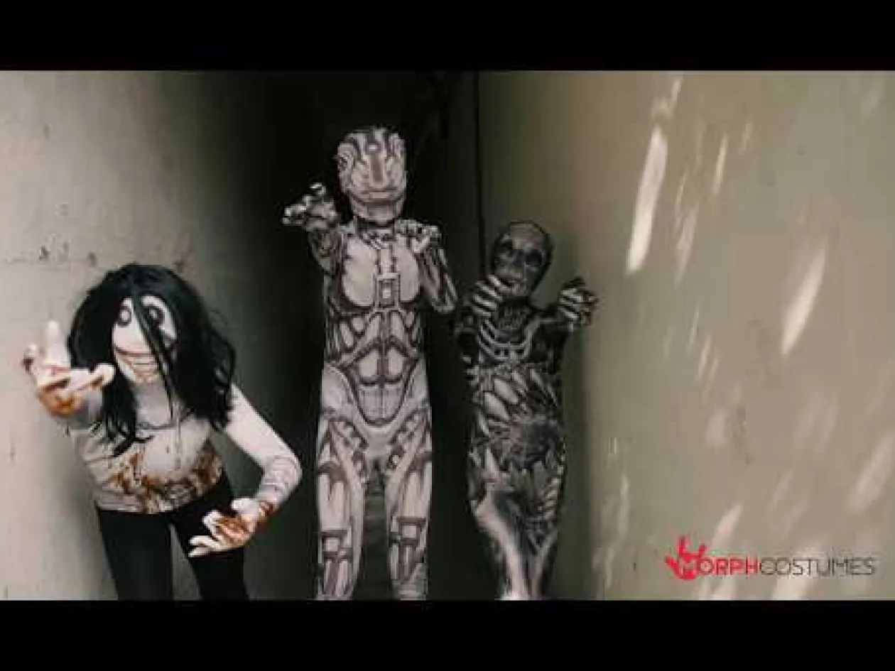 Get Ready To Give Everyone A Scare This Halloween In This Jeff The Killer Morphsuit Boys Costume. Morphsuit Comes In White Top Half With Blood Dripping Down, Black Bottom Half, White Face With Jacks Signature No Eyelids Eyes And Big Gummy Smile. Also Includes A Long Black Wig. Features A Zip And A Hood With Quick Release Velcro On The Back Of The Head For Easy Removal. You’Ll Find Him Hiding In Your Closet, Waiting For You To Come Home.