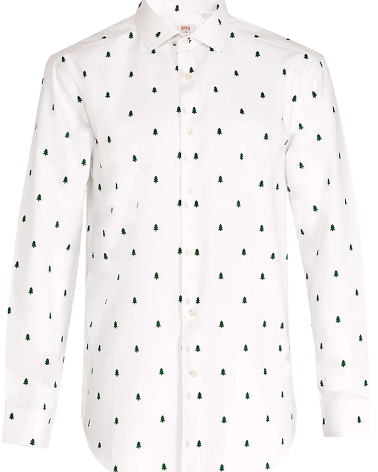 For A Good Looking Shirt You Can Pull Off Wearing Year-Round Check Out Our Christmas Trees Mens Shirt. Featuring A Slim-Fitting Buttoned-Up White Shirt With Long Sleeves With An Array Of Small Green Christmas Trees! Great Idea For That Refined Look When You’Re Attending Christmas In July Parties Or Work Christmas Functions! What’s More, It’s Even Great If You Just Want A Nice Shirt!
