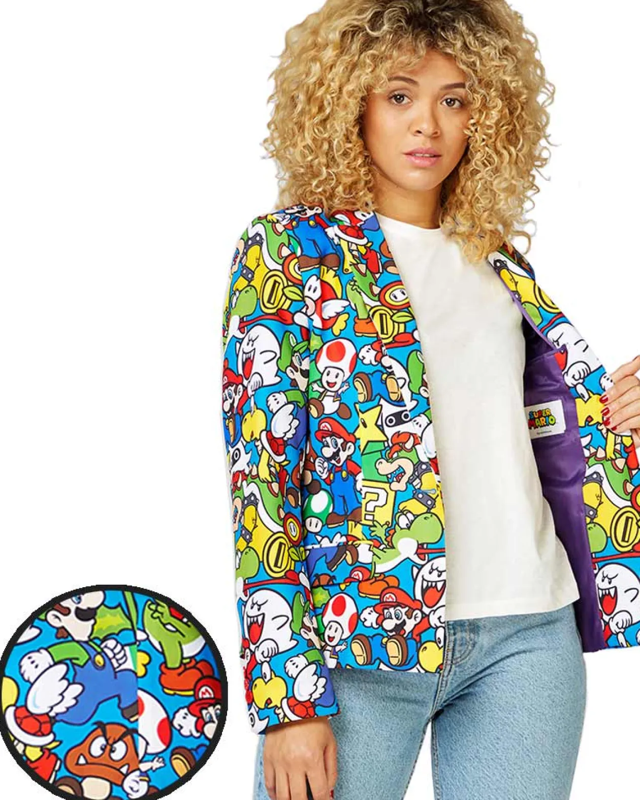 If You’Re A Fan Of Super Mario You’Ll Love Our Opposuit Super Mario Womens Blazer. The Super Mario Blazer Is Great As An Easy Costume Idea Great For Any Special Occasion, Styled With An Array Of Super Mario Characters Including Mario, Peach, Luigi, Bowser, And Much More. The Slim Fit Blazer Features Two Front Flap Pockets, 1 Inside Pocket, Is Fully Lined, Black Slit, And Padded Shoulders. If You’Re Unsure About Sizes We Recommend Picking The Larger Size Of The Two Suits As They Come In A Slim Fit. All Opposuit Pants And Jackets Are Lined With A Small Amount Of Additional Fabric So That If Desired, They May Be Tailored To Your Exact Length And Fit By An Alterations Business Or Tailor. Also, The Waistband Of Trousers Can Be Adjusted 2 Sizes Larger Or Smaller Than The Original Size.
