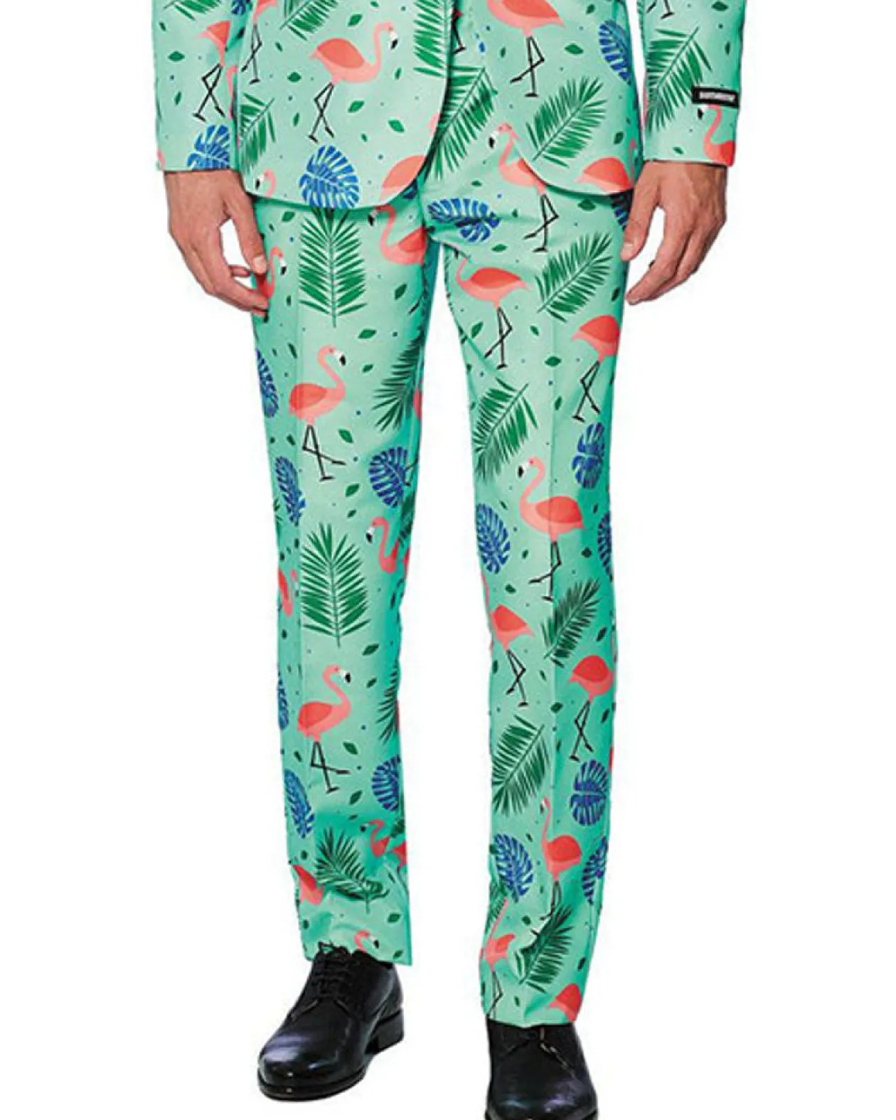 Have The Party Of Your Lifetime In This Totally Rad Tropical Suitmeister! This All Inclusive Suit Jacket, Pants And Tie Will Help You Stand Out Of Any Crowd, Nomatter The Location. The Suit Comes In Soft Aqua With Darker Blue, Green And Pink Accents In The Shape Of A Flamingo, And Two Types Of Palm Leaves. Perfect For Summer Parties And Drinks At A Swish Bar.