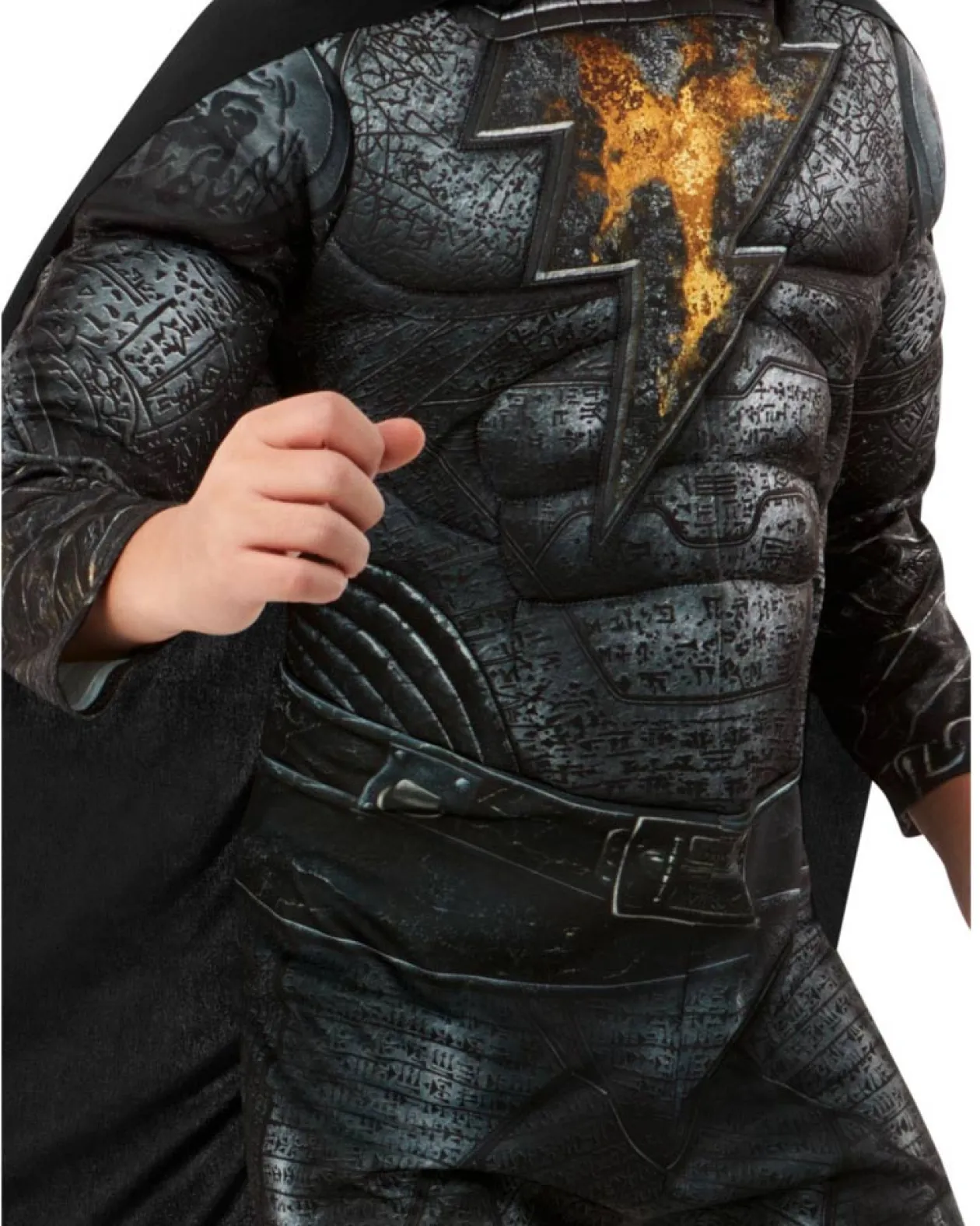 Any Black Adam Fans Would Love Our Shazam Better Watch Out When You Wear Our Black Adam Kids Costume. The Black Adam Costume Includes A Black Jumpsuit With A Textured Front, A Fibre-Filled Muscle Chest, And The Iconic Gold Lightning Bolt On The Torso. The Costume Comes Complete With An Attached Black Cape.