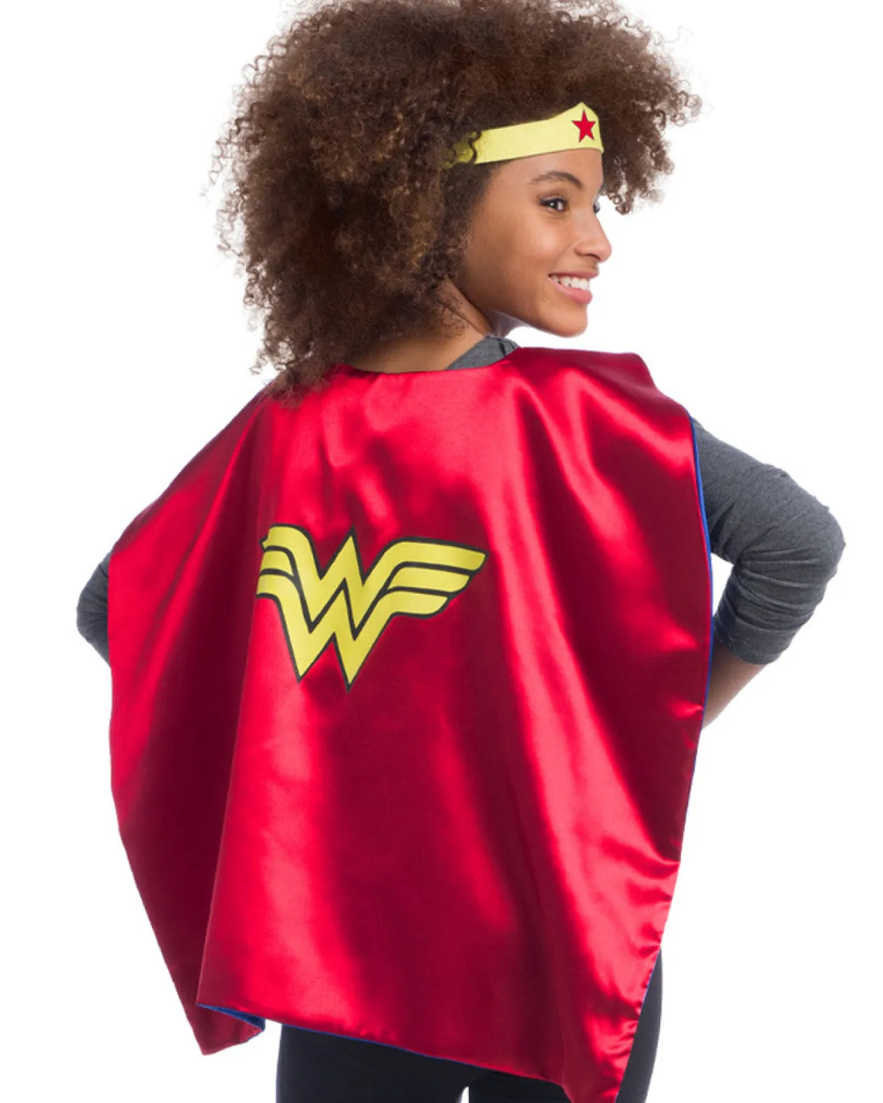 Transform Your Little Hero Into A Powerful Warrior With This Dc Comics Wonder Woman Girls Cape. This Superhero Accessory Will Have Your Child Ready To Fight Crime And Defend The World In No Time. The Satin Fabric Cape Features A Bold Wonder Woman Logo On The Backend And Attaches Easily With A Velcro Closure At The Collar For A Secure And Comfortable Fit. The Red Star Headpiece Adds An Extra Touch Of Superhero Style, With An Elastic Strap To Keep It Securely In Place. Perfect For Little Warriors Who Want To Save The World. Get Ready To Hear The Battle Cry Of “I Am Wonder Woman!” With This Fantastic Cape. Ideal For Kids, Superhero Fans, And Wonder Woman Fans Alike.