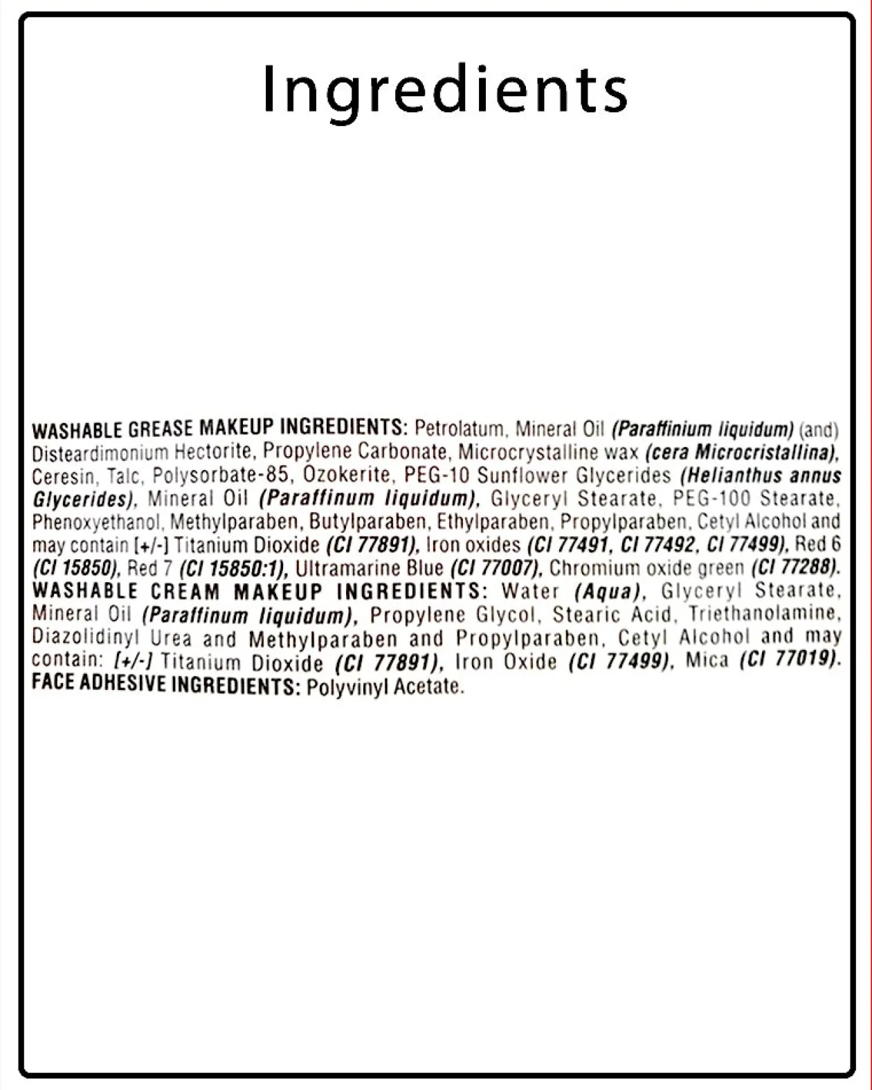 Transform Yourself Into The Mysterious Outsider From Tim Burton’s Cult Classic With This Edward Scissorhands Makeup Kit. The Kit Contains 2 Latex Scars With A Tube Of Adhesive To Attach Them To Your Face, A Palette Of White Red, Black, Grey And Green Makeup With An Applicator Brush And Sponge, And A Tube Of Grey Cream Face Makeup.