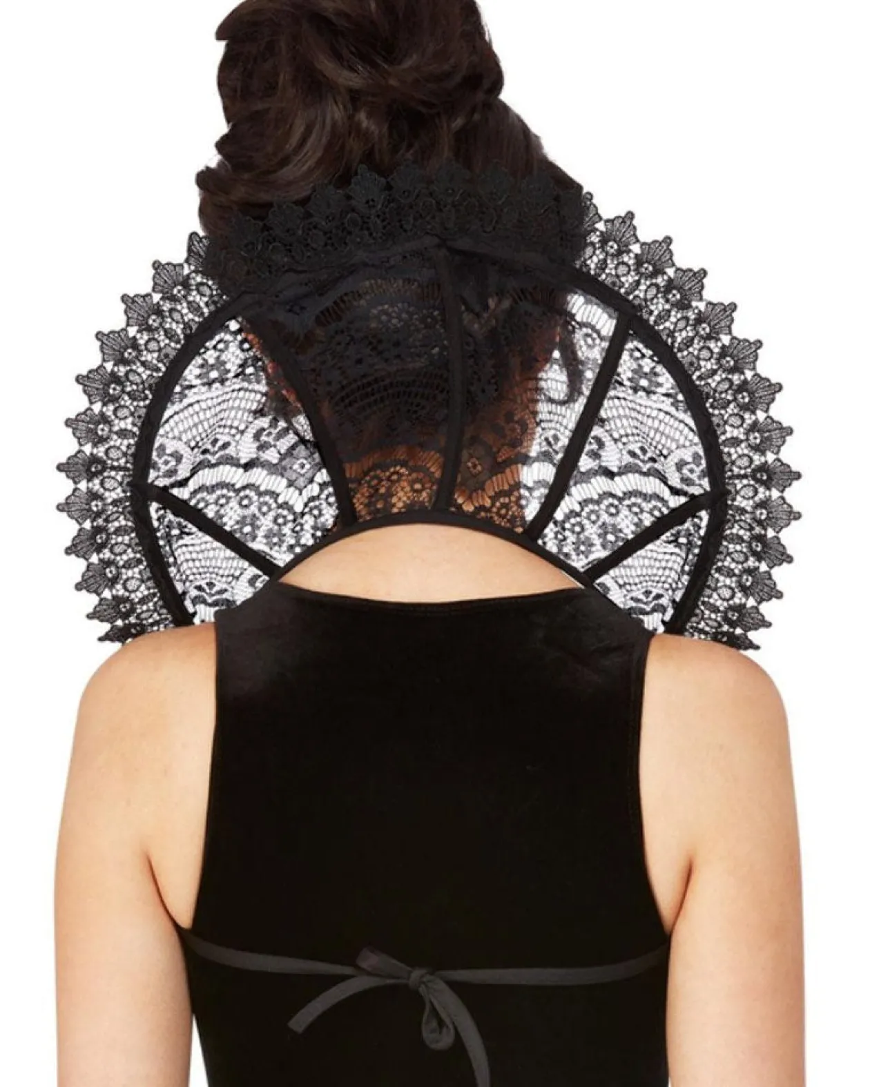 You’Ll Be Both Regal And Gothic With This Gothic Lace Stand Up Collar Added To Your Costume. The Collar Is Black Lace With Metal Boning So It Stands Up Nicely When You Loop It Around The Back Of Your Neck And Tie It Off Under The Arms And Around The Back With The Attached Straps. This Accessory Is A Must-Have For Any Gothic Costume Including Victorian Vampires, Gothic Queens, Spider Queens And More For Halloween And Fancy Dress Events.
