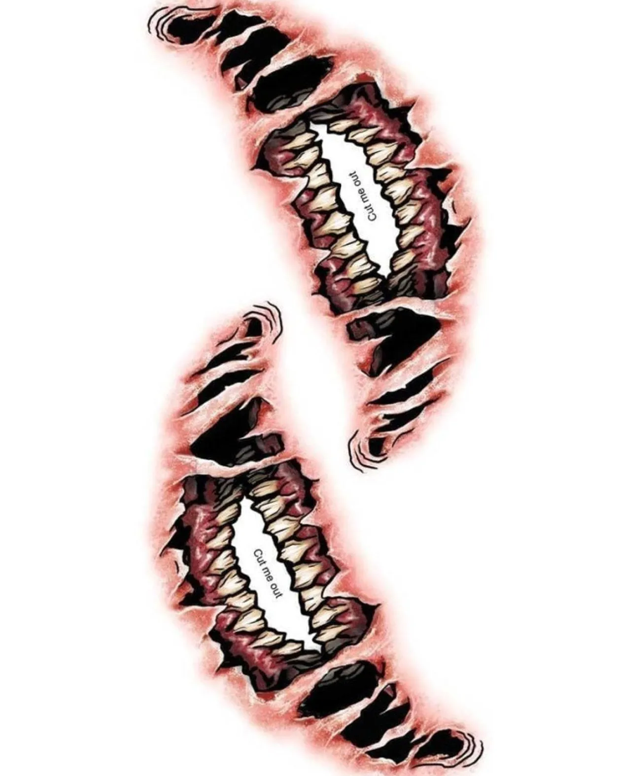 This Big Mouth Decay Tattoo Kit Is Perfect To Complete Your Zombie Outfit This Halloween Or For A Zombie March! The Tattoo Creates A “Decaying” Look Around Your Mouth To Make Your Flesh Look Like It’s Rotting Away Like A Real Zombie! To Complete The Look, A Tube Of Black Paint Is Included, As Well As A Makeup Brush For Application And Of Course The Big Mouth Tattoo!!